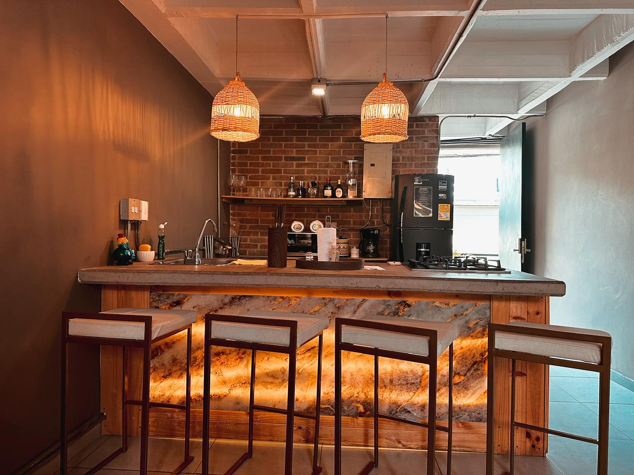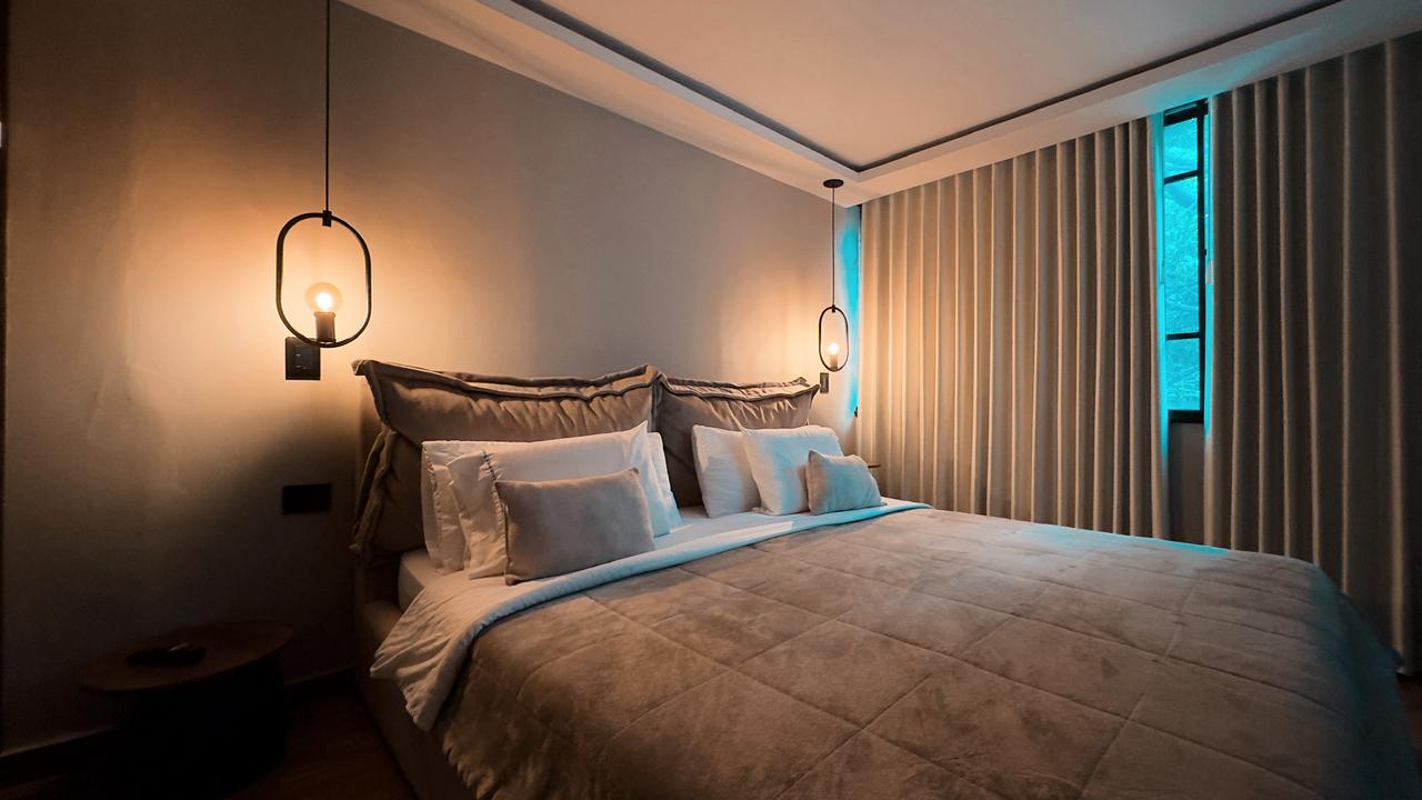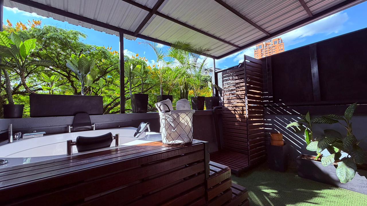 Loft dúplex en el corazón de El Poblado con jacuzzi privado como pieza central. Planta baja abierta — sala, comedor y cocina totalmente equipada — y planta alta íntima con suite king + queen. Diseñado para parejas o grupos pequeños que buscan lujo, confort y privacidad absoluta en una de las zonas más exclusivas de Medellín.